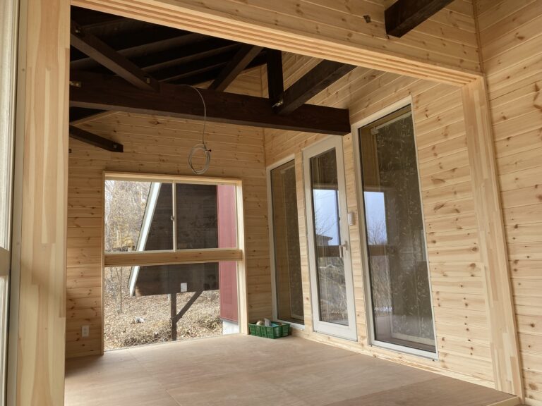 今回は屋根付きのウッドデッキを囲い居住スペースに改造した工事のご紹介です。 こちらが工事前の状態です 外周に足場とネットを張り養生をします 床の下地を作り 本体部分にも内装用の無垢板を貼り 周囲に開口部と壁を作り 部屋が出来ていきます […]